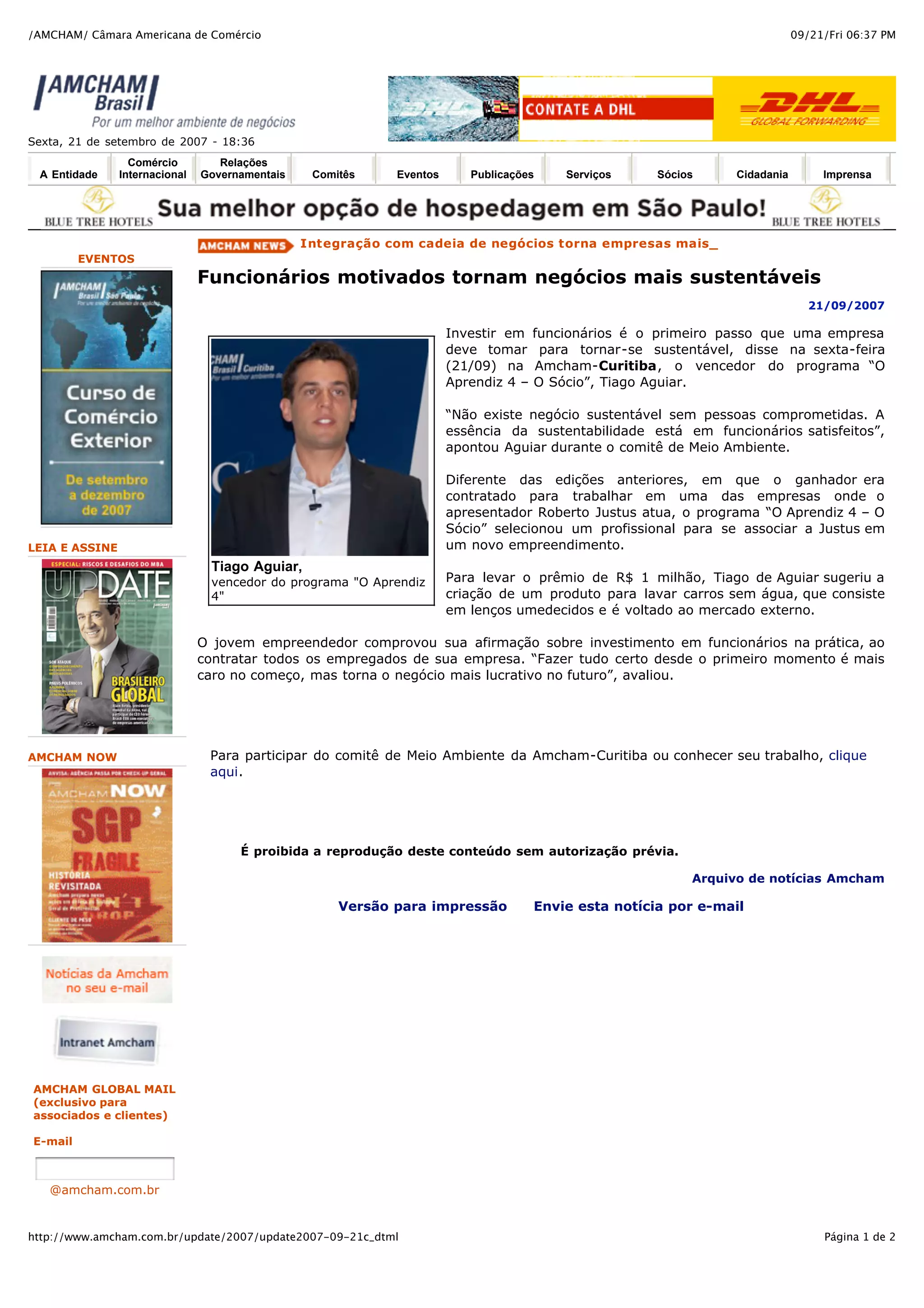 No evento da Amcham em Curitiba, Tiago Aguiar, vencedor do programa 'o aprendiz 4 – o sócio', destacou a importância do investimento em funcionários para a sustentabilidade empresarial. Aguiar, que criou um produto de limpeza de carros sem água, enfatizou que comprometer-se com os colaboradores é essencial para o sucesso a longo prazo. Ele também contratou todos os empregados de sua empresa, reforçando sua crença de que práticas corretas desde o início trazem lucro no futuro.