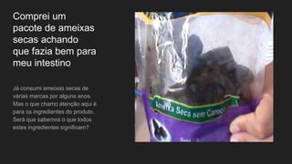 Alice Maria Costa discute os ingredientes de ameixas secas e questiona sua segurança à saúde, após realizar pesquisas sobre componentes como óleo vegetal e sorbato de potássio. Ela destaca possíveis riscos genotóxicos do sorbato de potássio e reflete sobre a relação entre alimentação e saúde. O trabalho é licenciado sob uma licença Creative Commons.