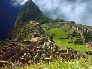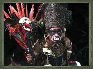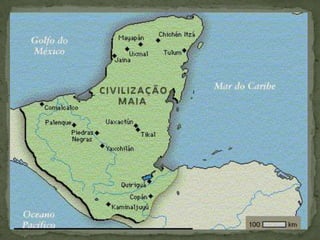 O documento discute a chegada dos primeiros povos às Américas através do Estreito de Bering entre a Ásia e a América do Norte. Também menciona que estudos genéticos apontam que os ameríndios descendem de pelo menos três ondas migratórias do leste asiático. Finalmente, descreve brevemente as culturas e sociedades dos Maias, Incas e Astecas nos territórios da América Central e América do Sul.