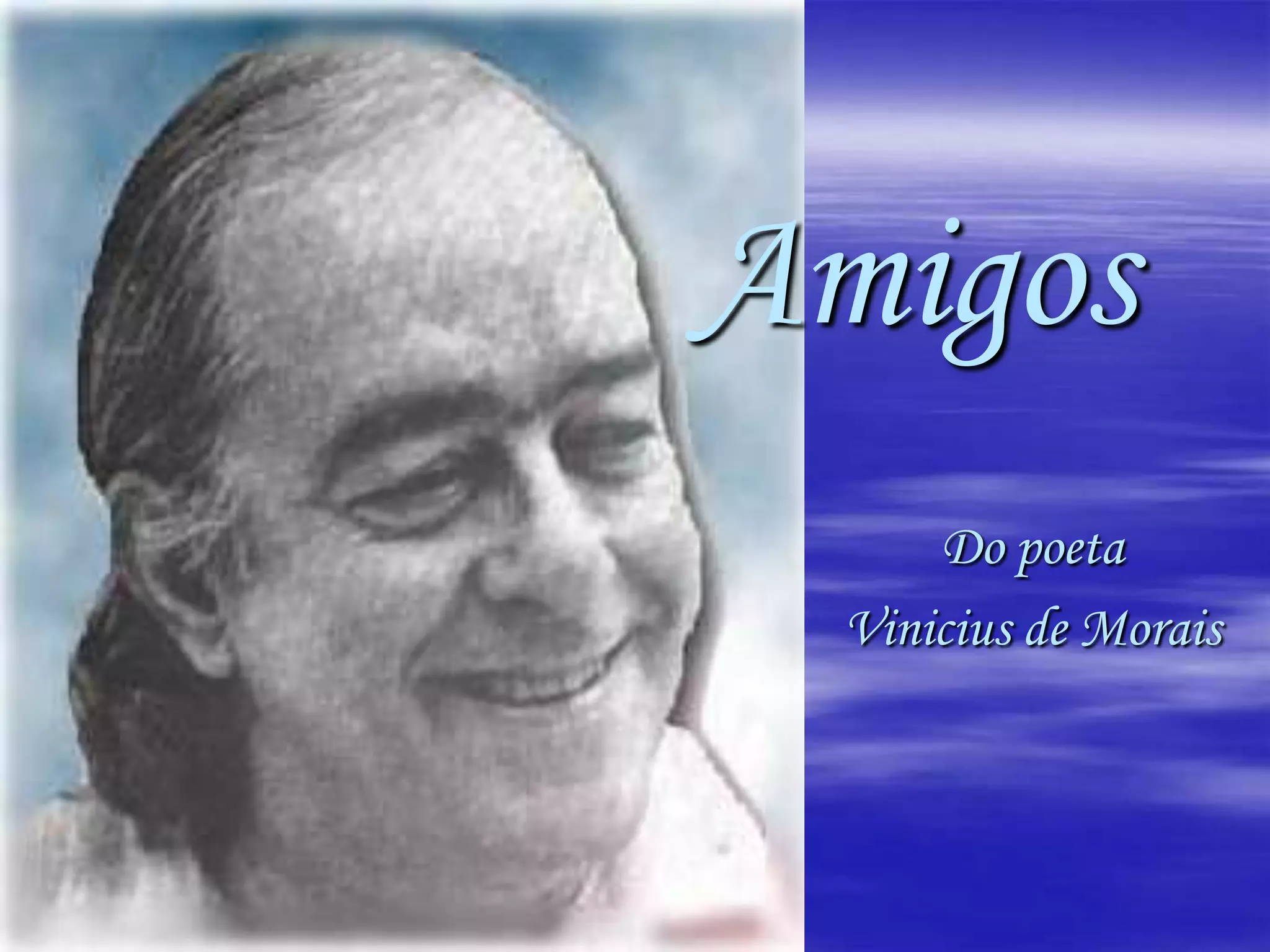 O poeta Vinicius de Morais descreve a importância da amizade em sua vida e como depende de seus amigos, embora muitos não percebam o quanto ele os ama. Ele sentiria dor se perdesse seus amores, mas enlouqueceria se todos os seus amigos morressem, pois eles são fundamentais para seu equilíbrio emocional. O poeta reza pela vida de seus amigos, mesmo que isso seja motivado por egoísmo, já que eles são essenciais para seu bem-estar.