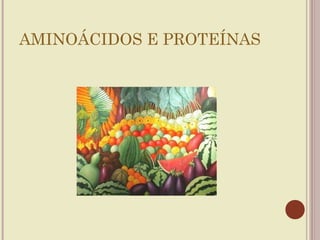 Este documento fornece um resumo sobre aminoácidos e proteínas. As proteínas são formadas pela ligação de aminoácidos, existindo 20 tipos principais de aminoácidos. As proteínas desempenham diversas funções vitais como estrutura, contração, transporte, defesa, entre outras. Sua estrutura é definida em níveis primário, secundário, terciário e quaternário.