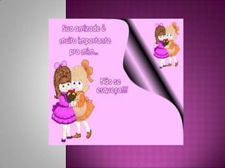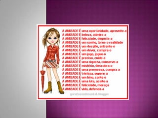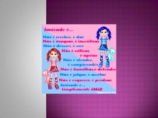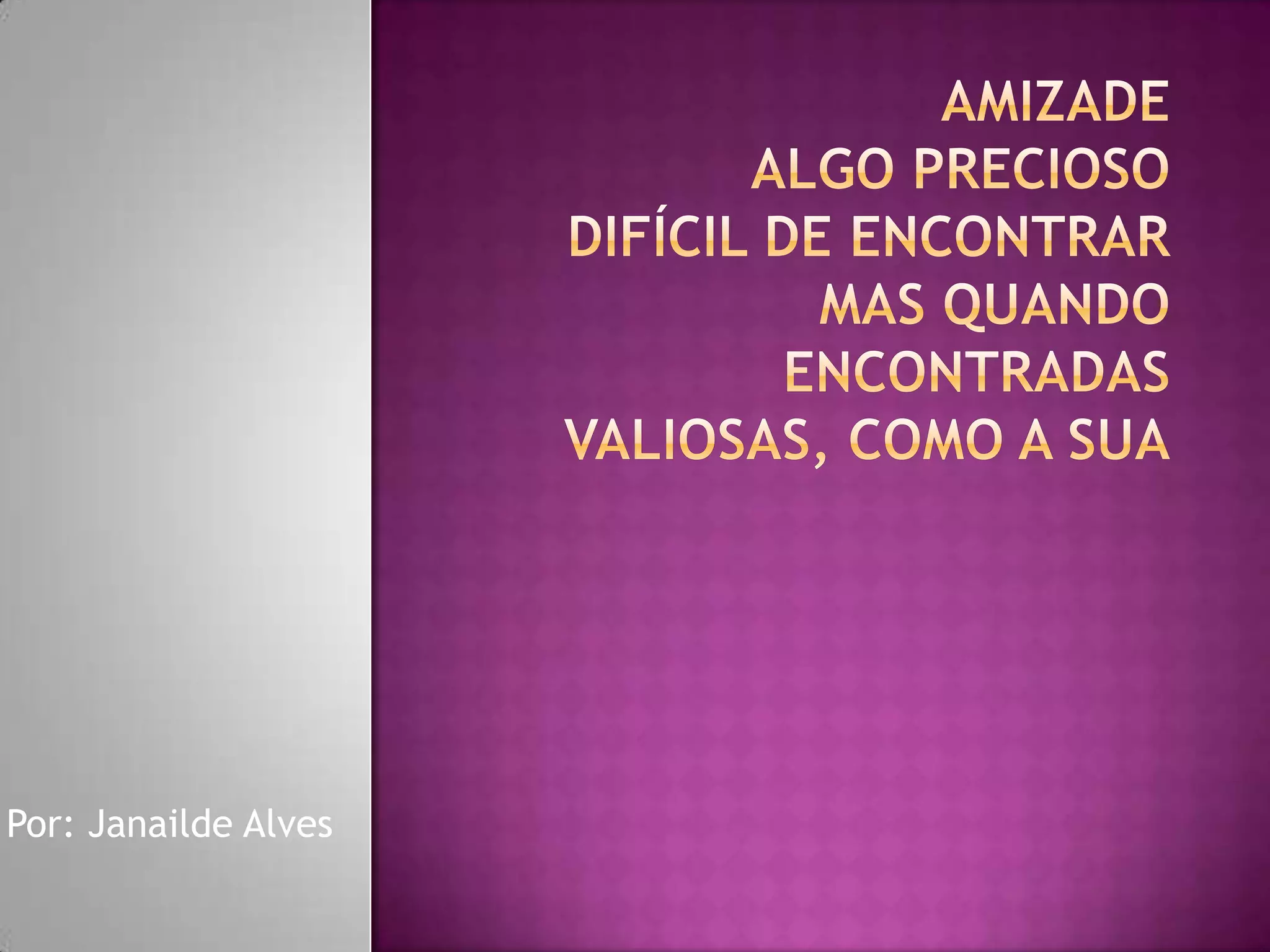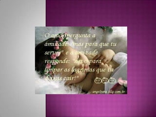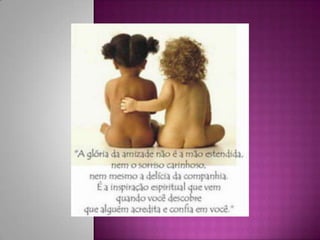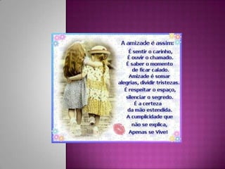 Amizade é algo precioso que é difícil de encontrar, mas quando encontrada é valiosa como a própria vida. A amizade acontece simplesmente por existirmos uns aos outros.
