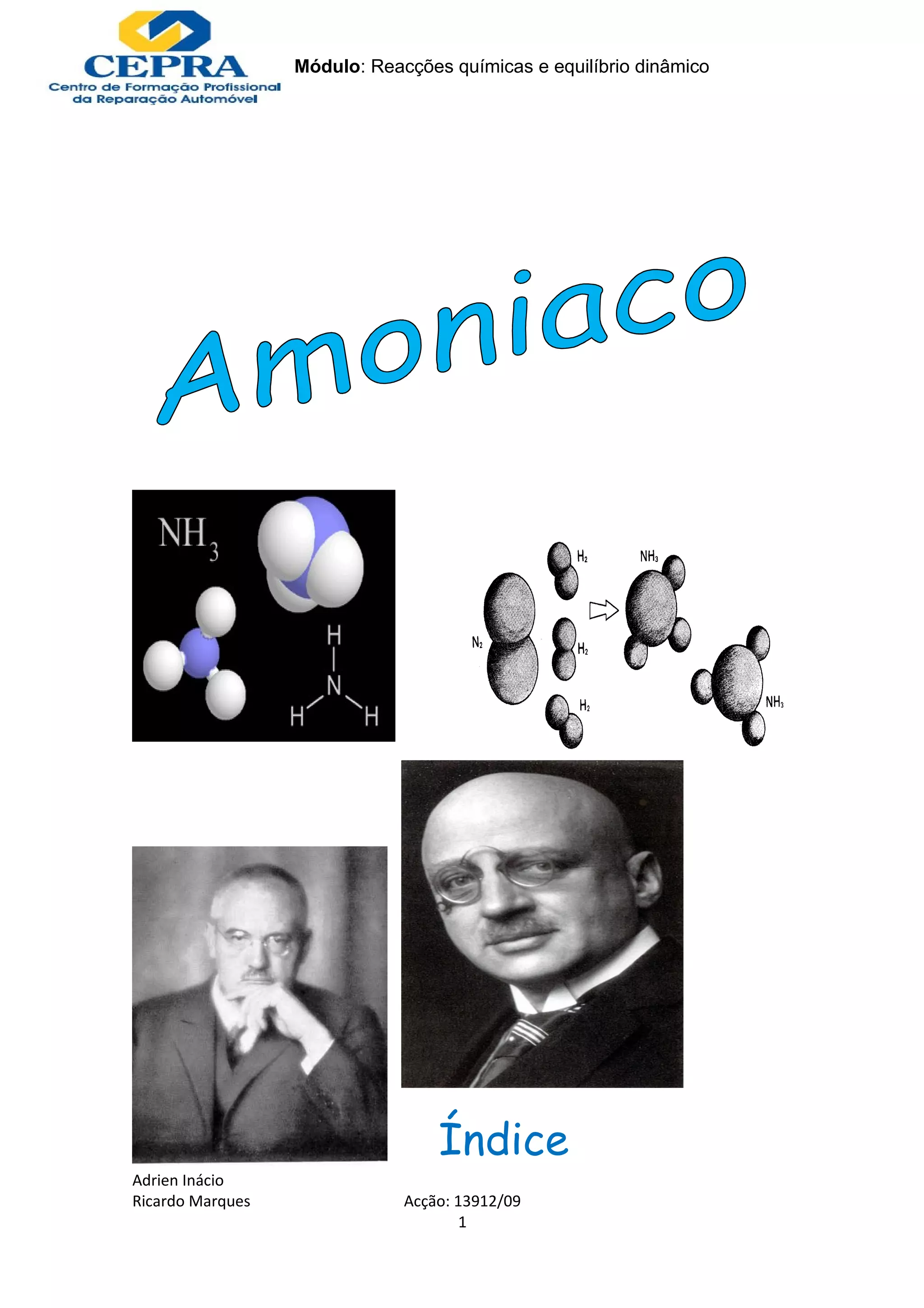 Este documento discute vários aspectos do amoníaco, incluindo sua história, importância, síntese e o processo Haber-Bosch para produzi-lo industrialmente através da reação de nitrogênio e hidrogênio sob alta pressão e temperatura moderada usando um catalisador de ferro.