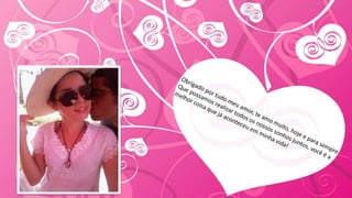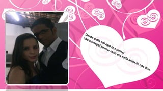 O documento é uma carta de amor em que o autor expressa seu forte sentimento pela pessoa amada, descrevendo-a como a primeira pessoa que o fez sentir algo tão real e valioso e que ao seu lado sente que está vivendo e se aproximando de realizar seus sonhos. Ele declara que ela é a mulher da sua vida com quem quer passar o resto dos dias, construindo uma família.