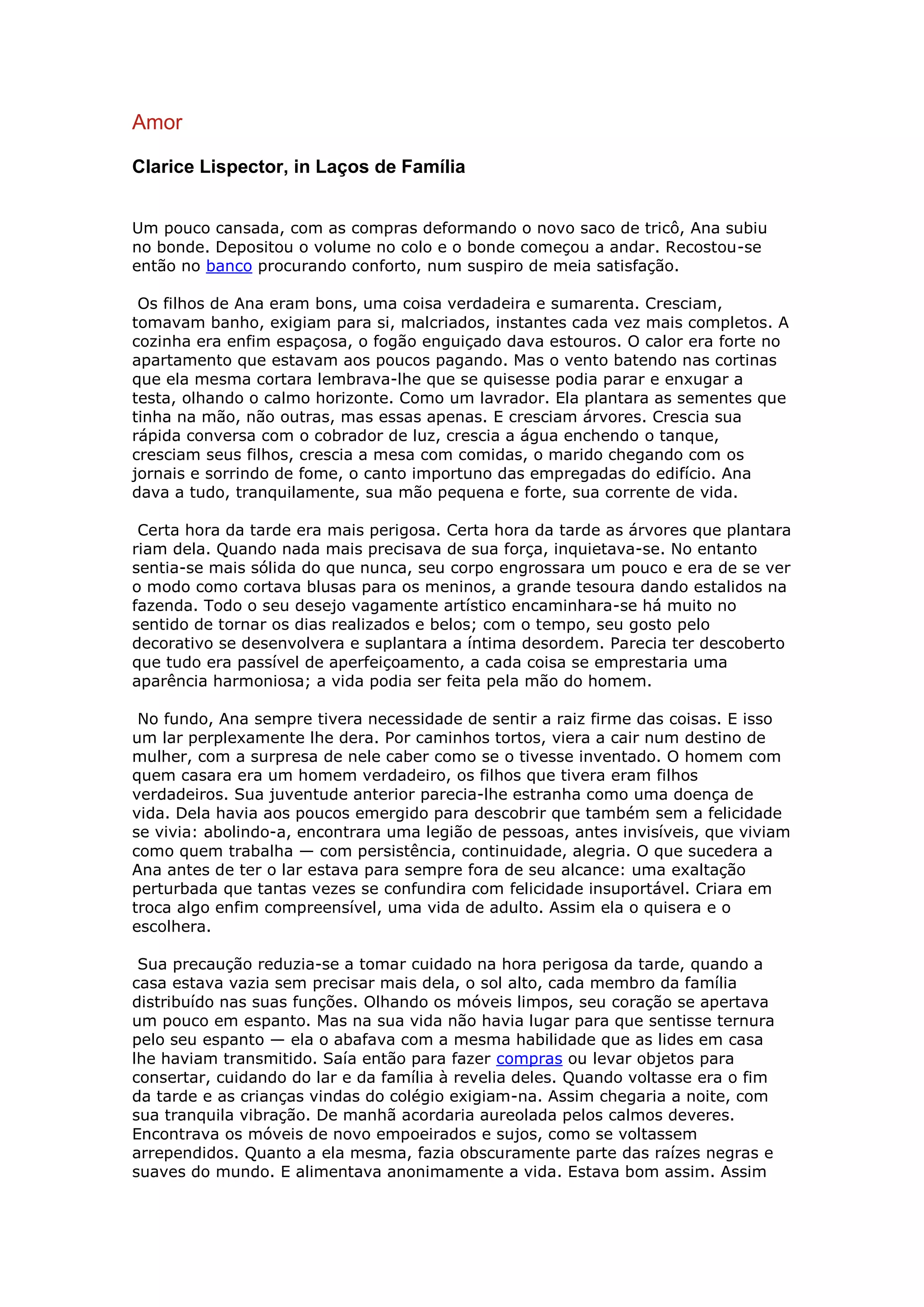 O conto retrata Ana, uma mulher que reflete sobre sua vida enquanto viaja de bonde, lidando com a rotina de suas responsabilidades e o crescimento de sua família. Ao se deparar com um cego mascando chicletes, Ana experimenta uma crise emocional que a faz questionar sua vida e as relações com as pessoas à sua volta, revelando suas angústias e o peso da realidade que a cerca. O contraste entre o cotidiano e a percepção da dor e do abandono no mundo a leva a uma nova compreensão sobre sua existência e seu papel na vida dos outros.