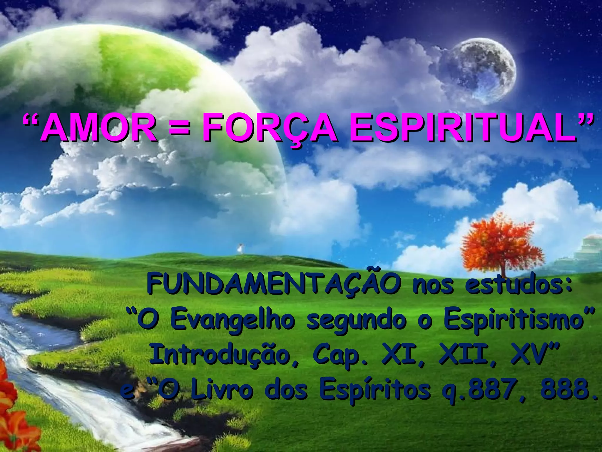 O documento discute os benefícios do amor como força espiritual. Apresenta trechos que destacam que o amor é a lei divina que governa o universo e substitui a personalidade pela fusão dos seres, extinguindo as misérias sociais. Também cita Jesus afirmando que o maior mandamento é amar a Deus e ao próximo, e que fora da caridade não há salvação.