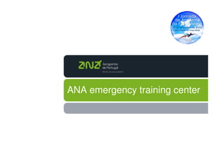 Este documento descreve o novo centro de treinamento de emergência da ANA Aeroportos de Portugal. O centro terá uma área de trabalho de 3000m2 com acesso direto à área de manobras e exterior. Ele foi projetado para treinar equipes em cenários realistas de incêndios e desencarceramentos em aeronaves, minimizando impactos ambientais através do uso de espumas biodegradáveis, sistemas de tratamento de resíduos e águas pluviais.