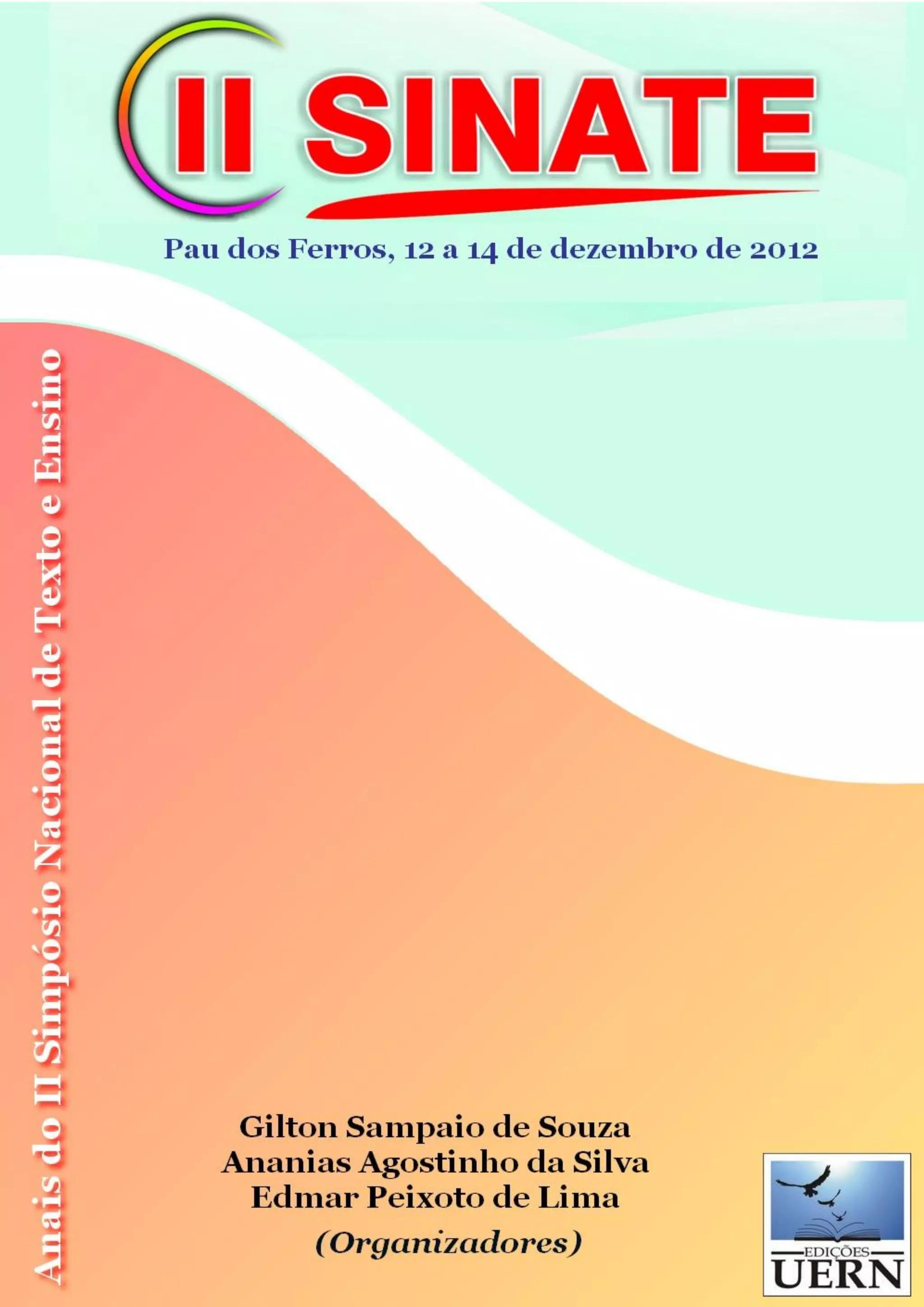Este documento apresenta os resumos e trabalhos completos apresentados no II Simpósio Nacional de Texto e Ensino (II SINATE). O evento ocorreu entre 12 e 14 de dezembro de 2012 na Universidade do Estado do Rio Grande do Norte e reuniu pesquisas sobre diversos temas relacionados à produção, análise e ensino de diferentes gêneros textuais. Os resumos e trabalhos estão organizados em cinco grupos temáticos.