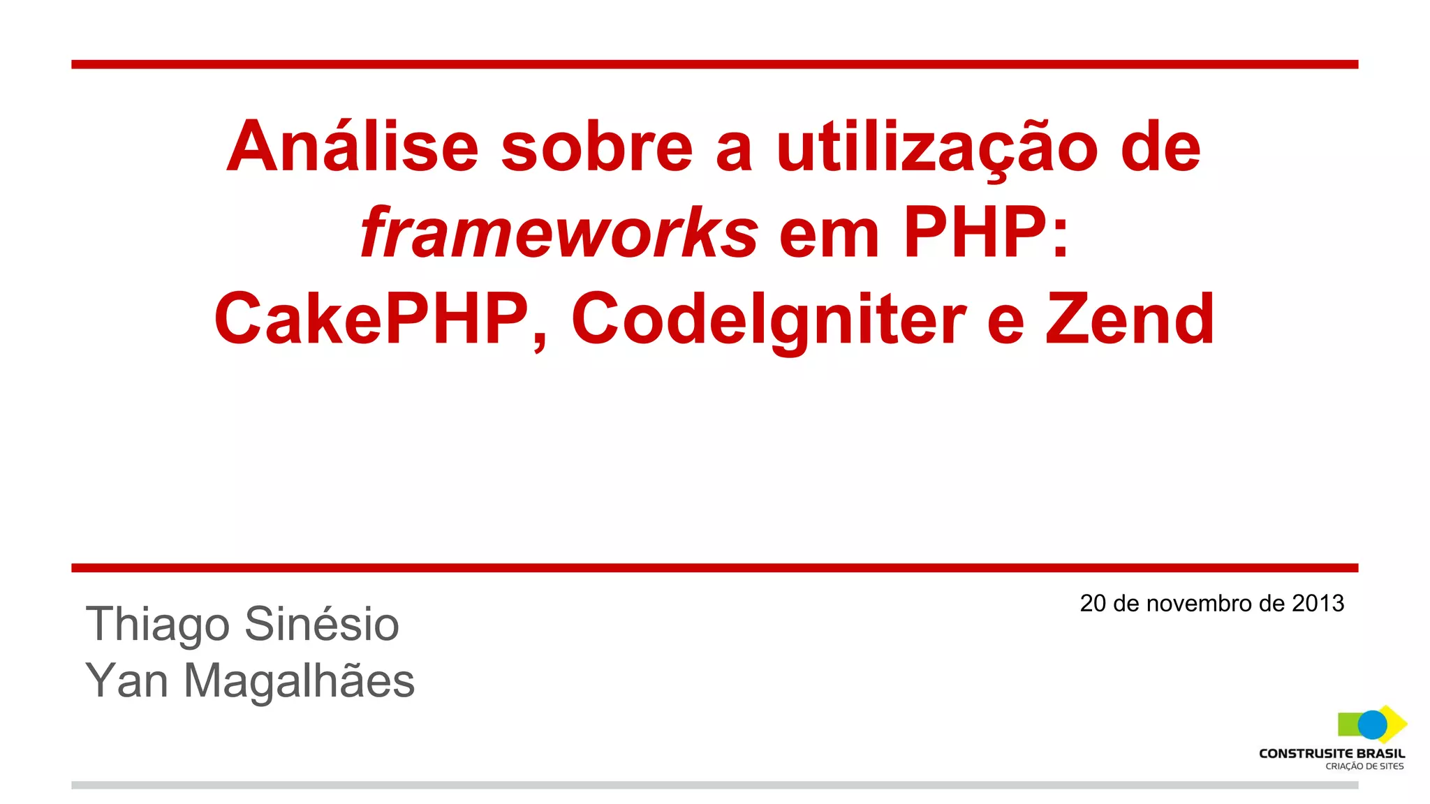 Análise sobre a utilização de frameworks em PHP: CakePHP, CodeIgniter e Zend