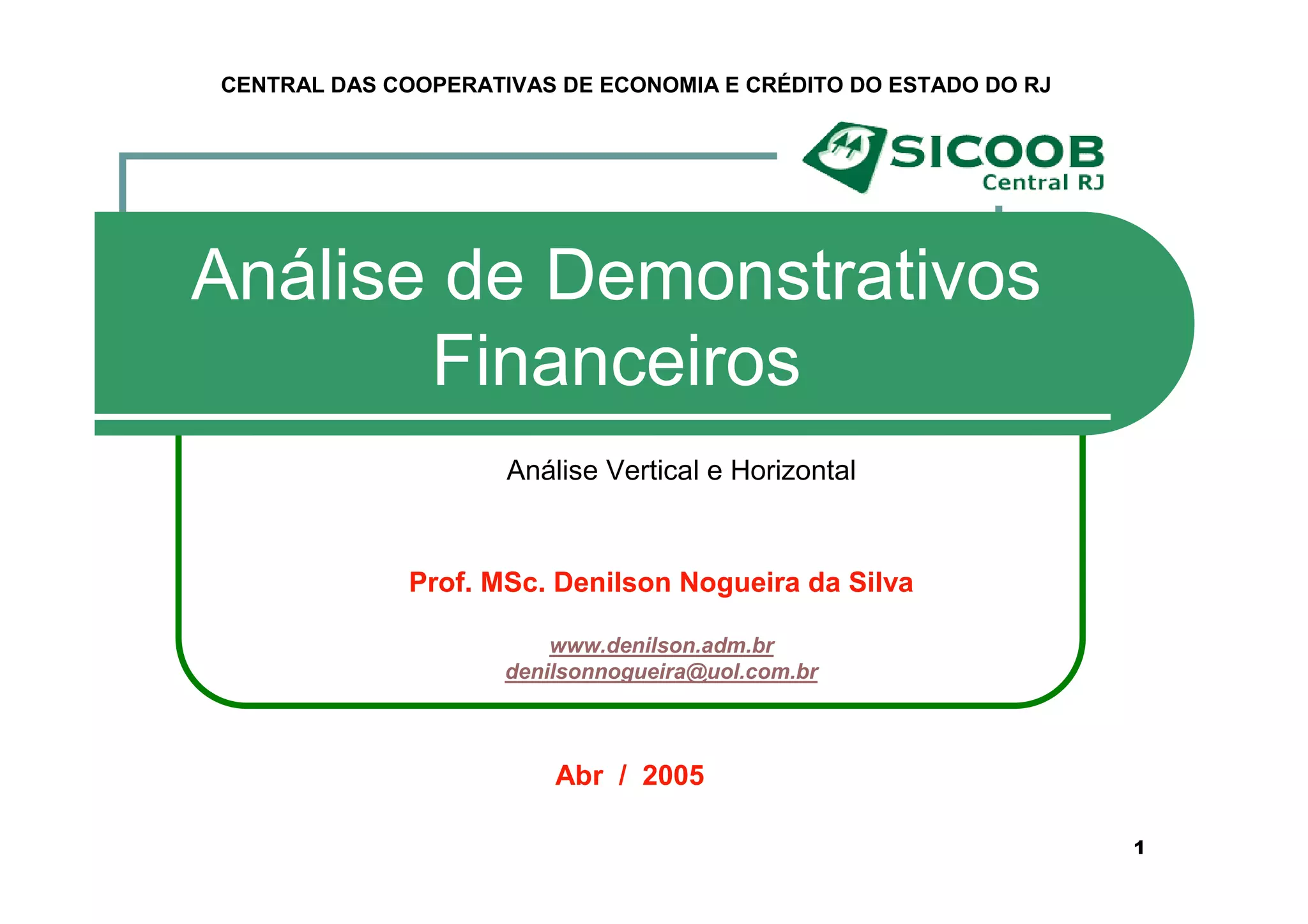 Este documento fornece uma introdução à análise financeira vertical e horizontal de demonstrações financeiras. A análise vertical compara itens em relação a um total e identifica contas importantes. A análise horizontal compara evoluções de contas ao longo do tempo para investigar variações. O documento também discute objetivos, usuários e exemplos de cálculos de índices financeiros para análises vertical e horizontal.