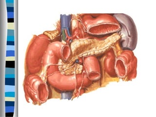 O pâncreas é uma glândula abdominal que produz enzimas digestivas e hormônios. Sua irrigação arterial e drenagem venosa ocorrem principalmente pela artéria e veia esplênicas, enquanto sua drenagem linfática segue os nódulos linfáticos pancreáticos.