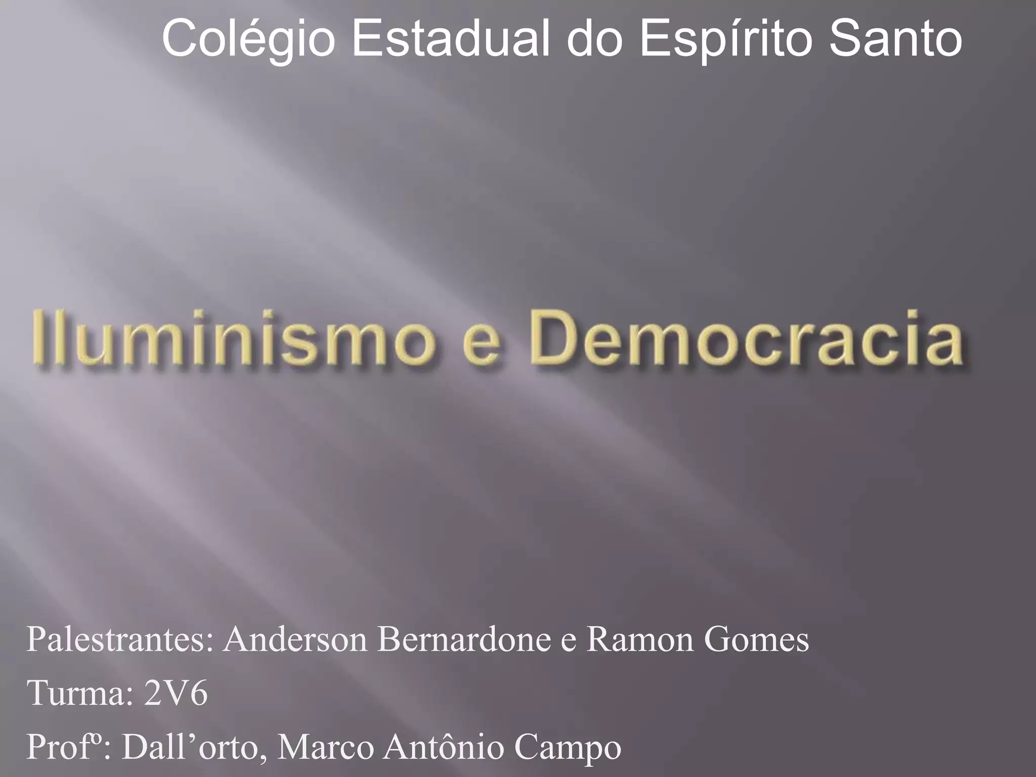 A palestra foi realizada por dois palestrantes no Colégio Estadual do Espírito Santo para a turma 2V6 sobre os temas Iluminismo e Democracia sob a supervisão do professor Marco Antônio Campo Dall’orto.