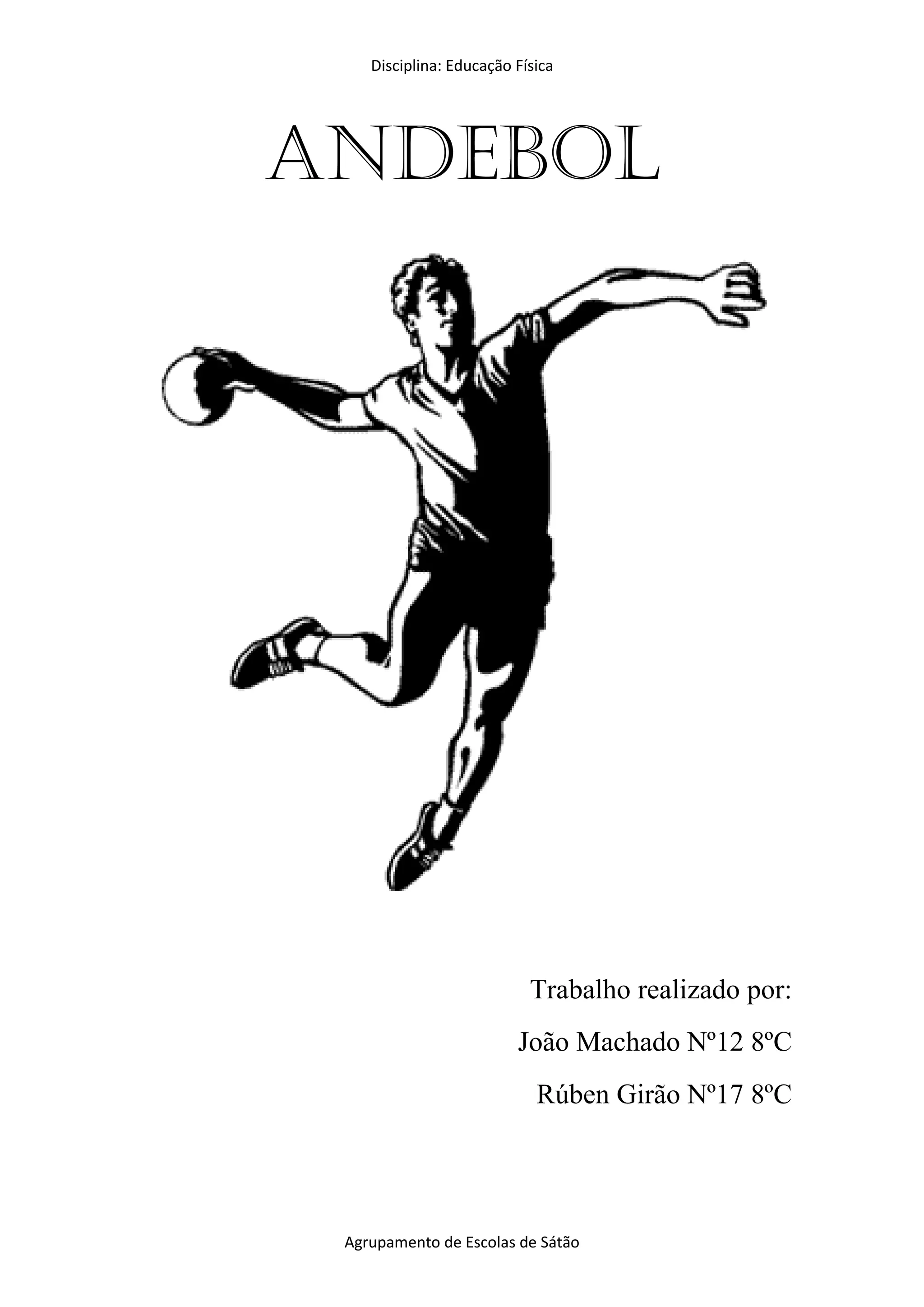 3) O trabalho foi realizado por dois alunos e resume as principais regras para uma melhor compreensão do jogo de andebol.