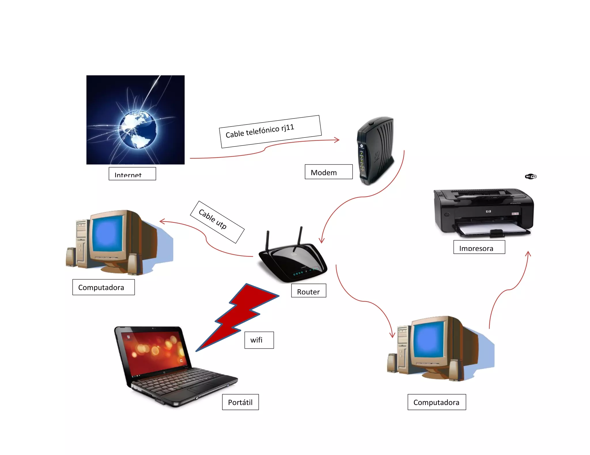 Internet Computadora Portátil Impresora Router Computadora Modem wifi