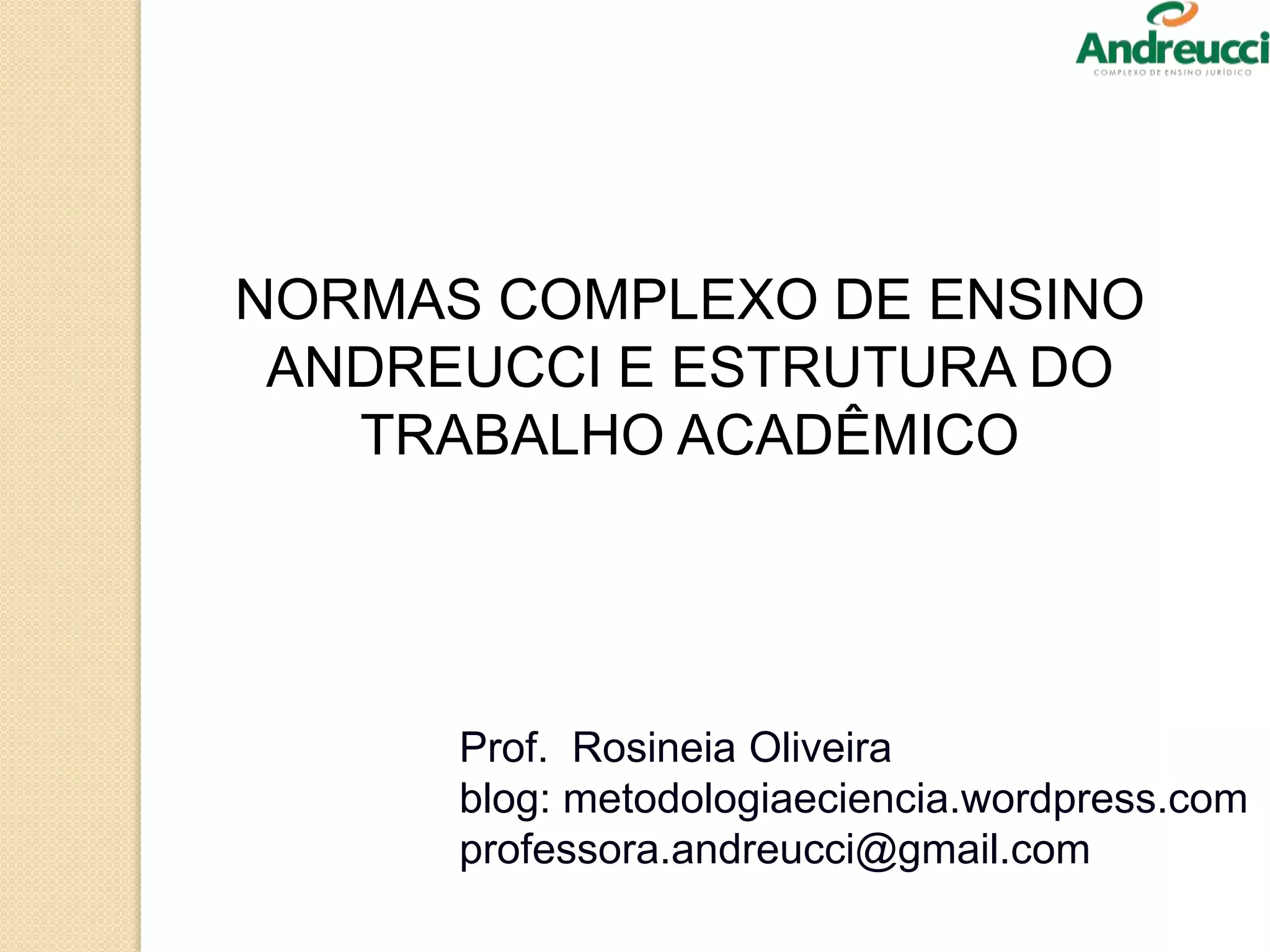 Este documento fornece normas e diretrizes para a elaboração de uma monografia como trabalho de conclusão de curso no Complexo de Ensino Andreucci. A monografia deve ter pelo menos 40 páginas, seguir as normas da ABNT, e abordar um tema das disciplinas aplicadas individualmente. A monografia será avaliada em vários critérios como título, resumo, introdução, objetivos, metodologia, desenvolvimento, conclusão e referências.