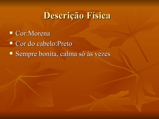 O documento descreve Joana, uma mãe morena de cabelos pretos que gosta de sair com as amigas e receber carinho dos filhos, mas não gosta de mentiras. O filho expressa seu amor pela mãe no Dia das Mães.