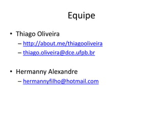 1) Apresenta a equipe do projeto e a agenda do documento.