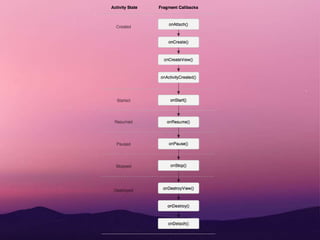 O documento aborda os primeiros passos no desenvolvimento Android, destacando sua popularidade e dominância no mercado. Ele menciona ferramentas essenciais como Android Studio, conceitos fundamentais como activities, fragments e intents, além de discutir a importância da publicação de aplicativos. Também são citadas tendências e eventos relevantes para desenvolvedores, como a Android Dev Conference 2015.
