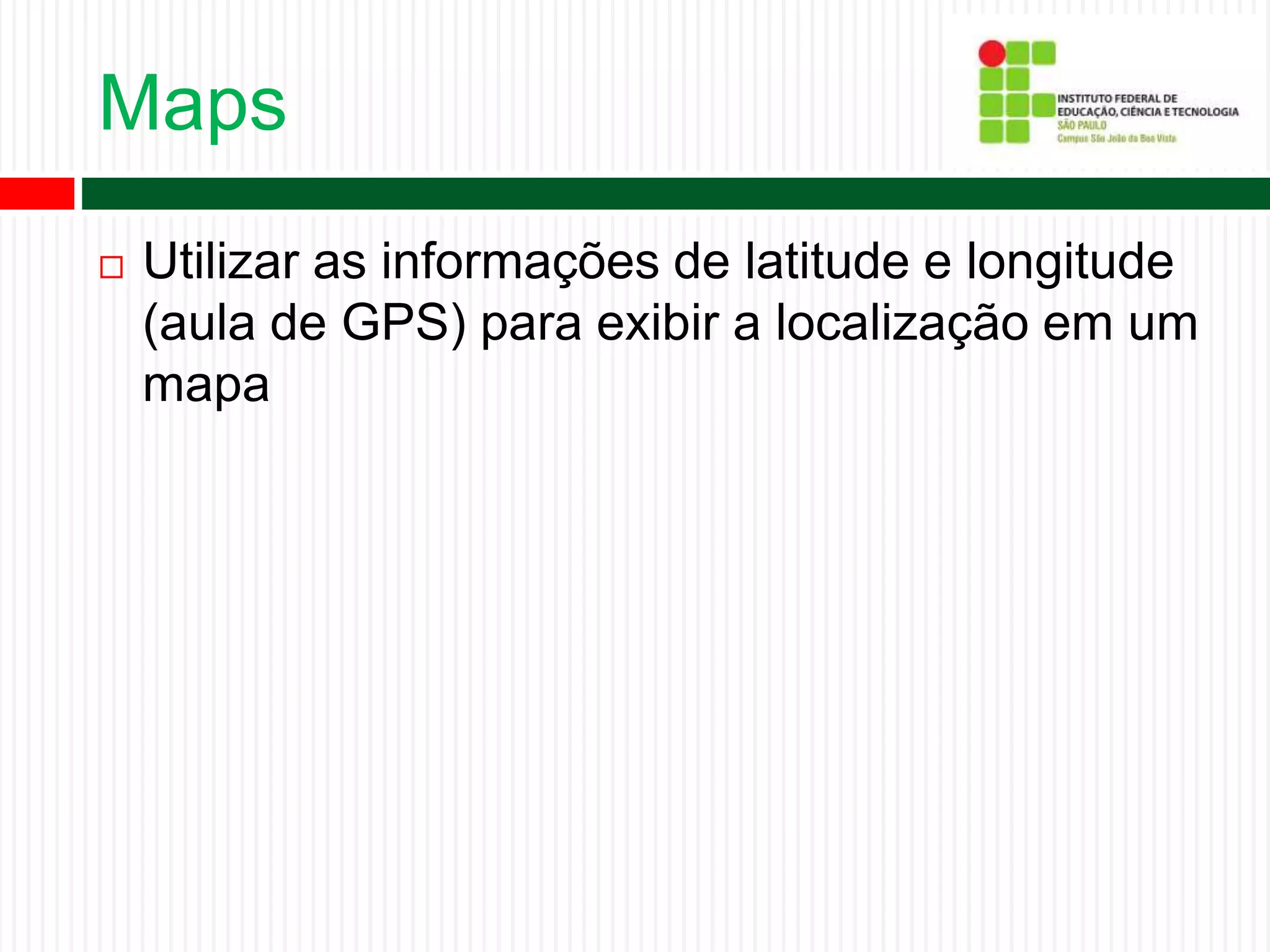 O documento discute como exibir mapas em aplicativos Android utilizando APIs do Google Maps. Ele descreve duas opções: usar a biblioteca Google Maps API para manipular mapas ou usar a API de Mapas Estáticos do Google para exibir imagens de mapas geradas a partir de coordenadas. Também explica como usar uma WebView para carregar páginas com mapas estáticos.