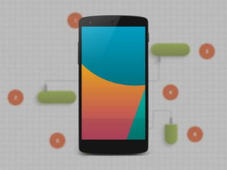O documento apresenta a evolução da plataforma Android desde o primeiro aparelho lançado (HTC G1) até modelos atuais como o Galaxy S5, destacando melhorias como telas maiores e mais resoluídas, câmeras melhores e processadores mais potentes. Também discute modelos de negócios para aplicativos Android e componentes como Activity, View e Fragment. Por fim, fornece links para documentação e guias de desenvolvimento para Android.