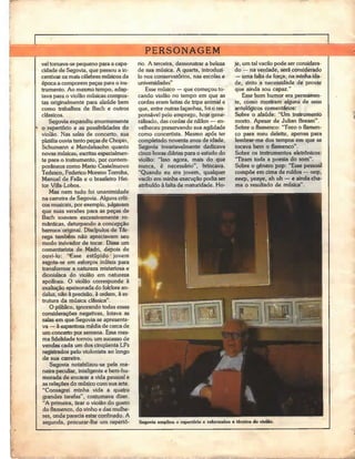 Andrés Segovia dedicou a vida ao violão, revolucionando a técnica de execução do instrumento e elevando seu status. Com seu talento, levou o violão às salas de concerto e expandiu enormemente o repertório, incentivando compositores a escreverem para o violão. Segovia continuou se apresentando e estudando até tarde em vida, preservando sua agilidade como concertista e contribuindo para a popularização do violão.