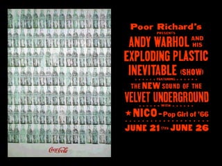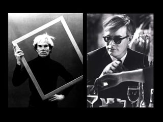 Andy Warhol foi um pintor e cineasta americano, ícone do movimento Pop Art. Ele se tornou famoso por suas pinturas de ícones da cultura popular e pelo uso da serigrafia para reproduzir imagens em massa. Warhol questionou a noção de celebridade e a impersonalidade dos objetos de consumo em massa.