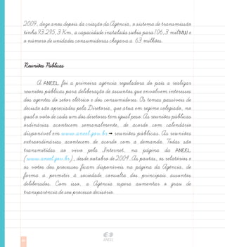 O documento descreve o que é a Carta de Serviços ao Cidadão e como ela deve ser preparada por órgãos públicos para divulgar serviços e padrões de atendimento à sociedade. Também resume a criação e atribuições da Agência Nacional de Energia Elétrica no Brasil.