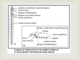 Os anelídeos são vermes segmentados que incluem minhocas, sanguessugas e poliquetos. Eles podem ser terrestres, de água doce ou marinhos e podem se locomover ou viver fixos. Apresentam simetria bilateral, celoma, metamerismo e outros traços típicos dos animais.