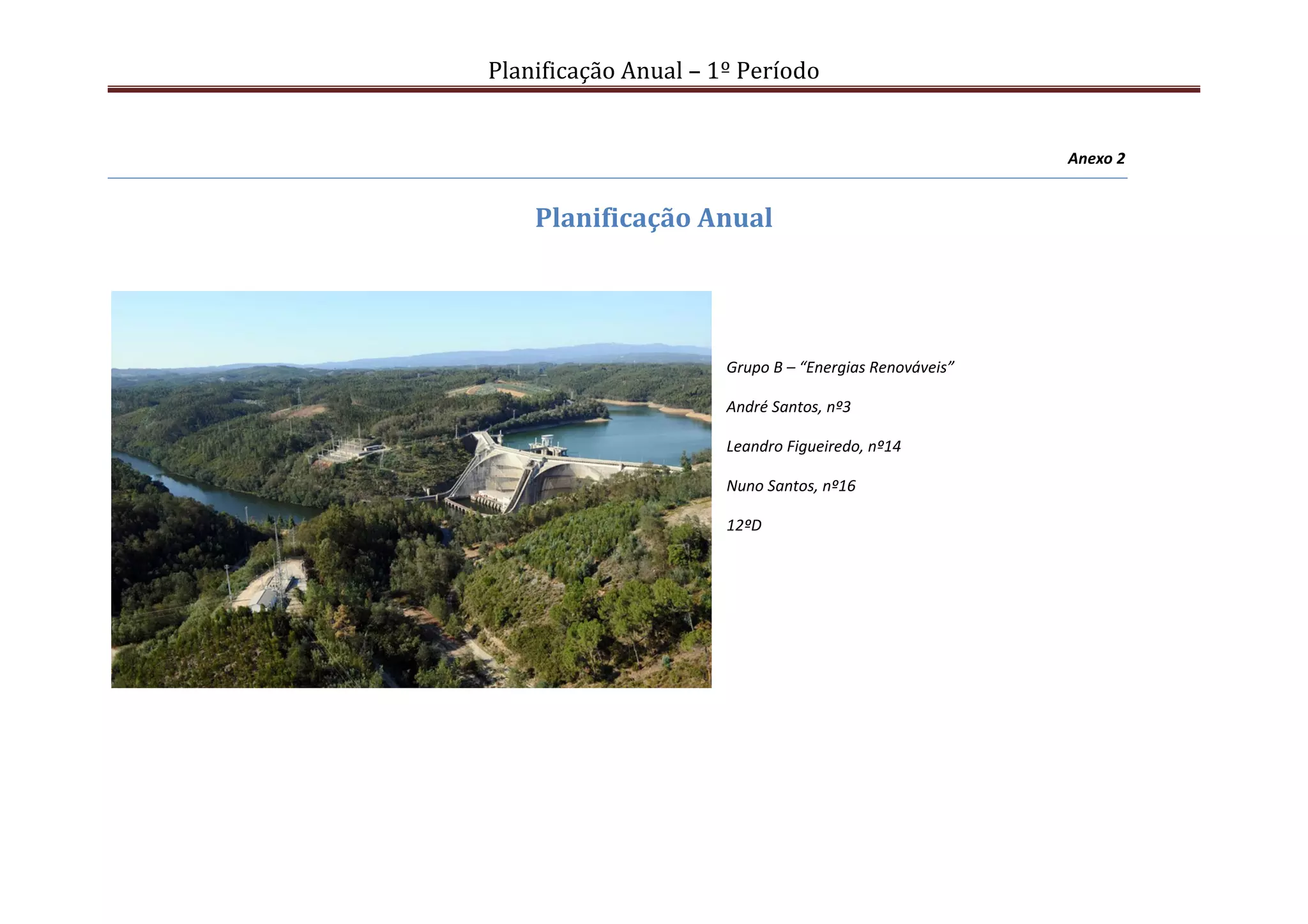 Este plano anual descreve as atividades de um grupo de alunos do 12o ano sobre energias renováveis ao longo do primeiro período. O plano inclui objetivos como consciencializar a comunidade escolar sobre a importância das energias renováveis e promover a educação ambiental através de inquéritos, relatórios, visitas e uma palestra.