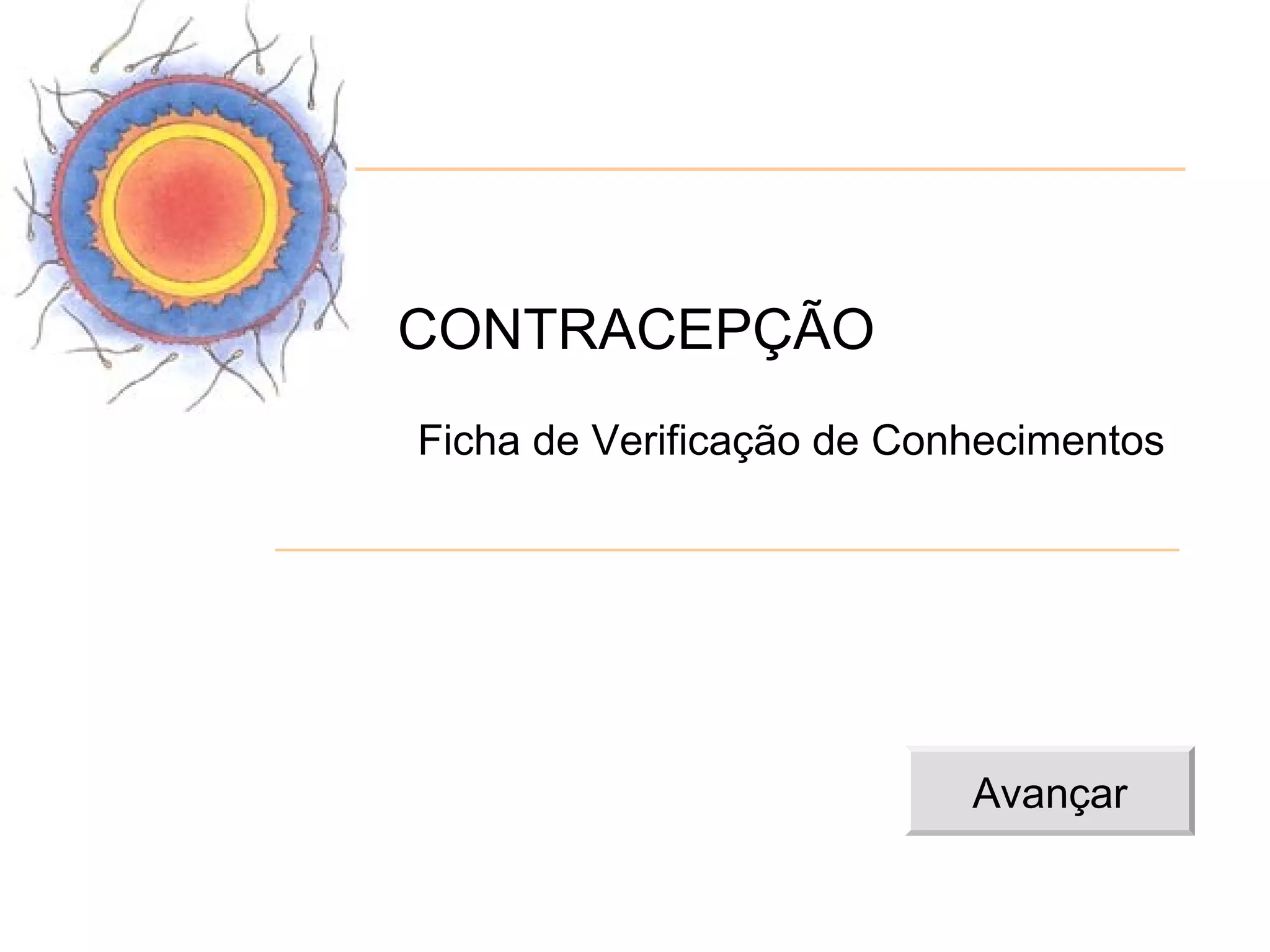 Este documento fornece um resumo sobre contracepção em forma de um teste de conhecimentos com perguntas e respostas. O teste aborda tópicos como métodos contraceptivos, responsabilidade na contracepção, riscos de gravidez na primeira relação sexual, eficácia dos métodos, acesso a contraceptivos gratuitos e consultas de planejamento familiar.