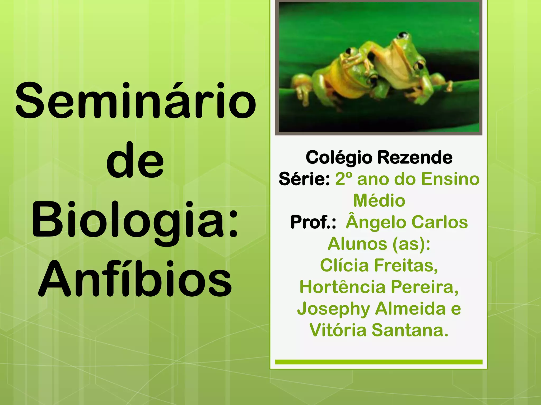O documento é um resumo sobre anfíbios produzido por estudantes do 2o ano do ensino médio. Ele contém informações sobre a classificação científica, características, sistemas e importância dos anfíbios.