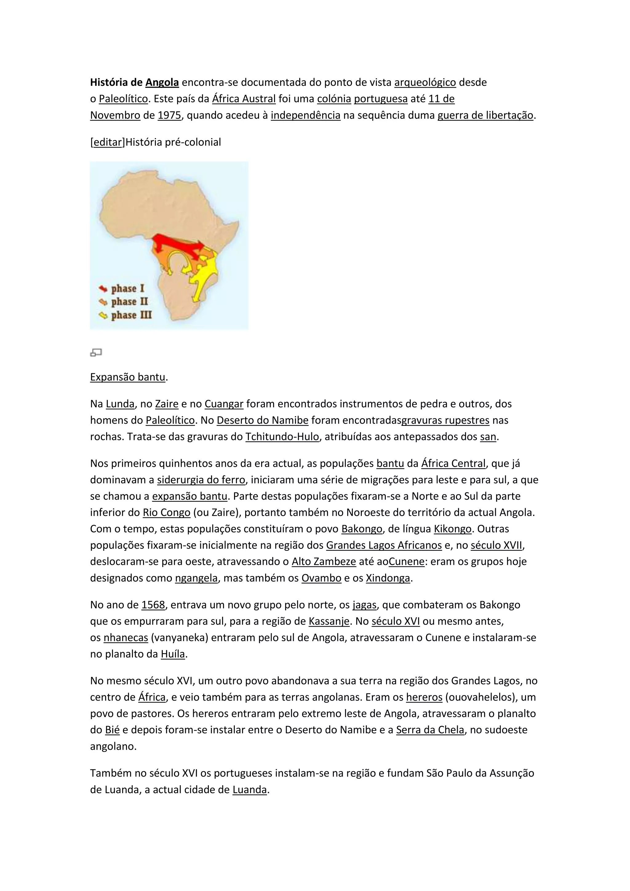 1) Angola tem uma história documentada desde o Paleolítico com a presença de vários povos bantus e grupos de caçadores-coletores.