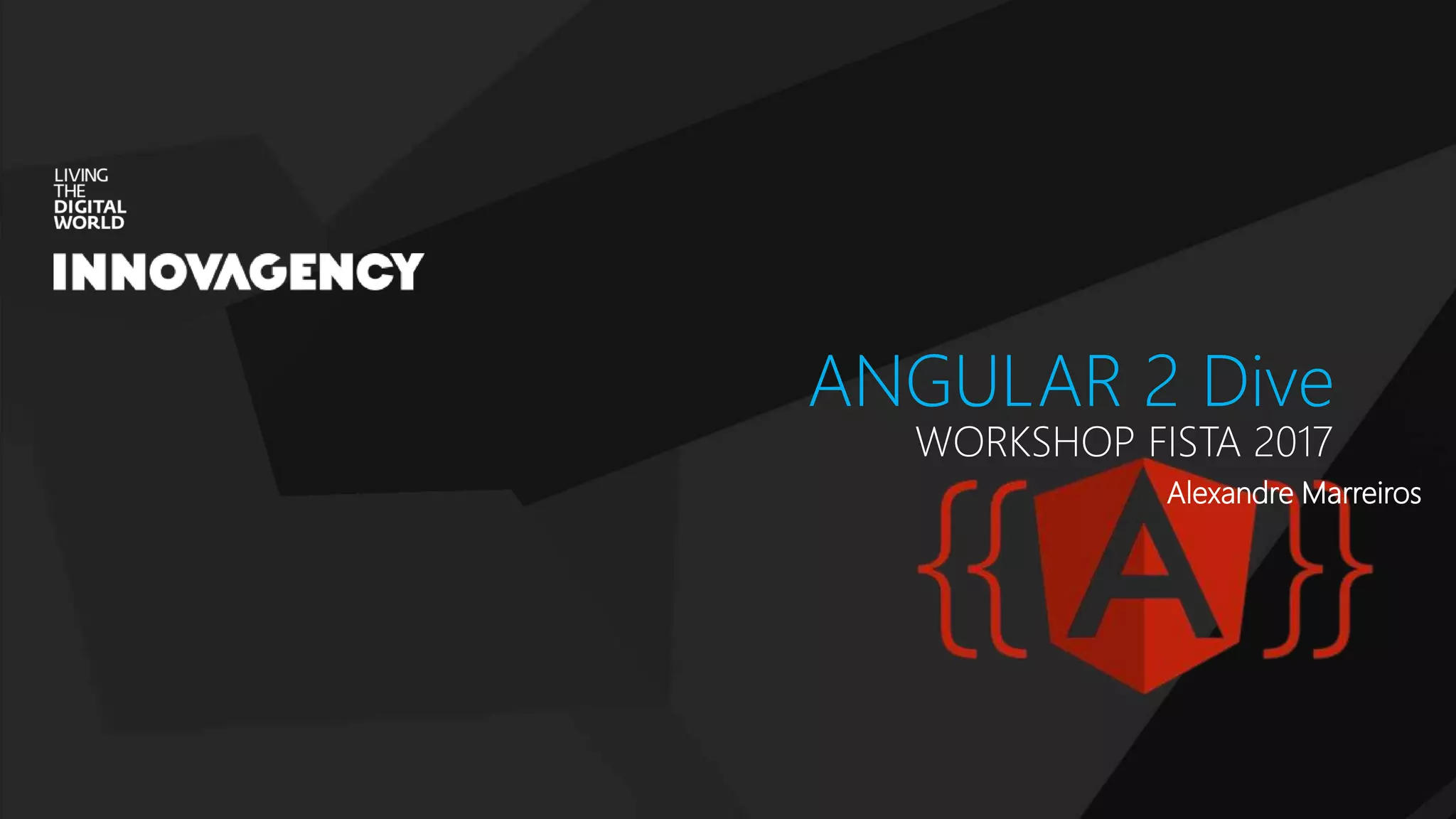O documento é um workshop sobre Angular 2, ministrado por Alexandre Marreiros, que aborda conceitos fundamentais como tipos de dados em JavaScript, a arquitetura do Angular, e a construção de componentes. O conteúdo enfatiza a importância do Angular como um framework moderno para desenvolvimento web, destacando suas características dinâmicas e modularidade. Além disso, o documento destaca que é propriedade intelectual da Innovagency e não pode ser alterado sem autorização.