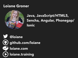 Este documento fornece informações sobre Loiane Groner, uma desenvolvedora especializada em Angular, JavaScript e programação reativa. Ela oferece treinamentos sobre esses tópicos e mantém um blog e perfis nas redes sociais para compartilhar conhecimento. O documento também apresenta conceitos-chave da programação reativa e como implementá-la usando Angular e a biblioteca NgRx.