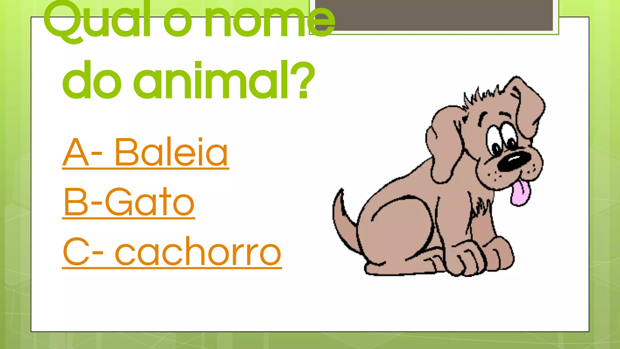 Este documento contém uma série de perguntas sobre nomes de animais com respostas corretas e incorretas, terminando com uma mensagem de parabéns por ter ganhado o jogo.