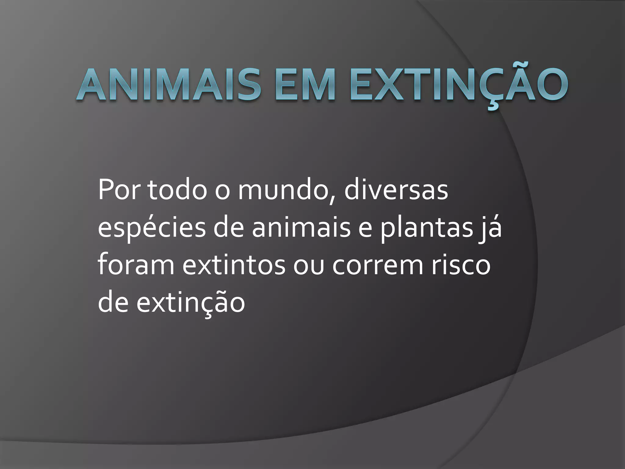 O documento destaca o risco de extinção de várias espécies animais no Brasil, incluindo o mico-leão-de-cara-dourada, tatu-bola e ararinha azul, e seus habitats. Também menciona os principais causadores da extinção, como o desmatamento e queimadas. A preservação da biodiversidade é enfatizada como fundamental para proteger esses animais e o planeta.