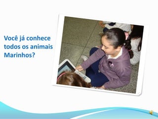 1) Alunos do 3o ano B da EMEB José Cataldi pesquisaram diversos animais marinhos como parte de um estudo sobre a vida nos oceanos.