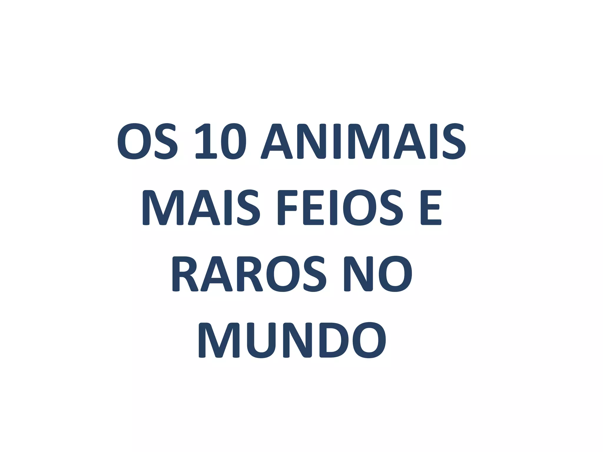 Este documento lista e descreve 10 animais raros e incomuns no mundo, incluindo o lagarto voador da Austrália que abre asas no pescoço para regular sua temperatura, o primata Tarsier com grandes olhos encontrado em Madagascar, e o peixe-bolha que vive preso a montanhas submersas.