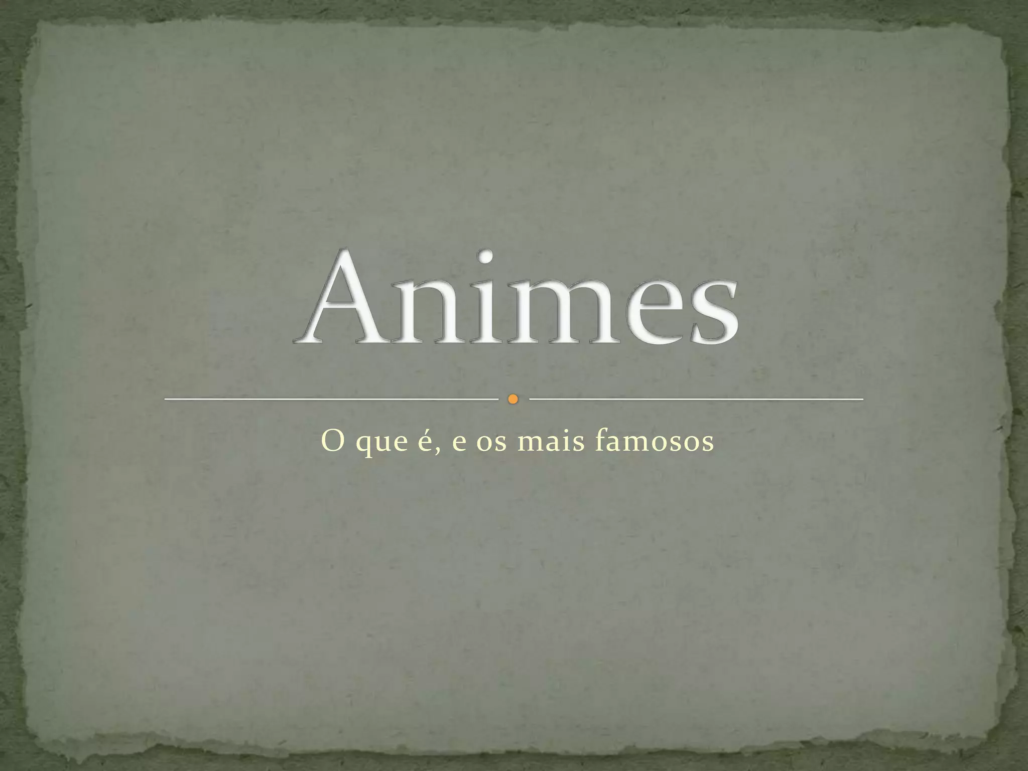 O documento descreve o que é anime, características comuns em produções de anime como expressões faciais exageradas, dublagem, e resume brevemente as histórias de populares animes como Naruto, Dragon Ball, Fairy Tail e Death Note.