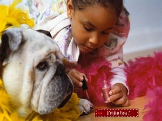 O documento descreve cães como anjos que trazem amor incondicional, amizade e proteção aos humanos. Afirma que cães são leais mesmo quando agredidos e que, apesar de sua aparência, são tão anjos quanto aqueles com asas. Alguns humanos acolhem cães abandonados para curar suas feridas e dar comida e abrigo.