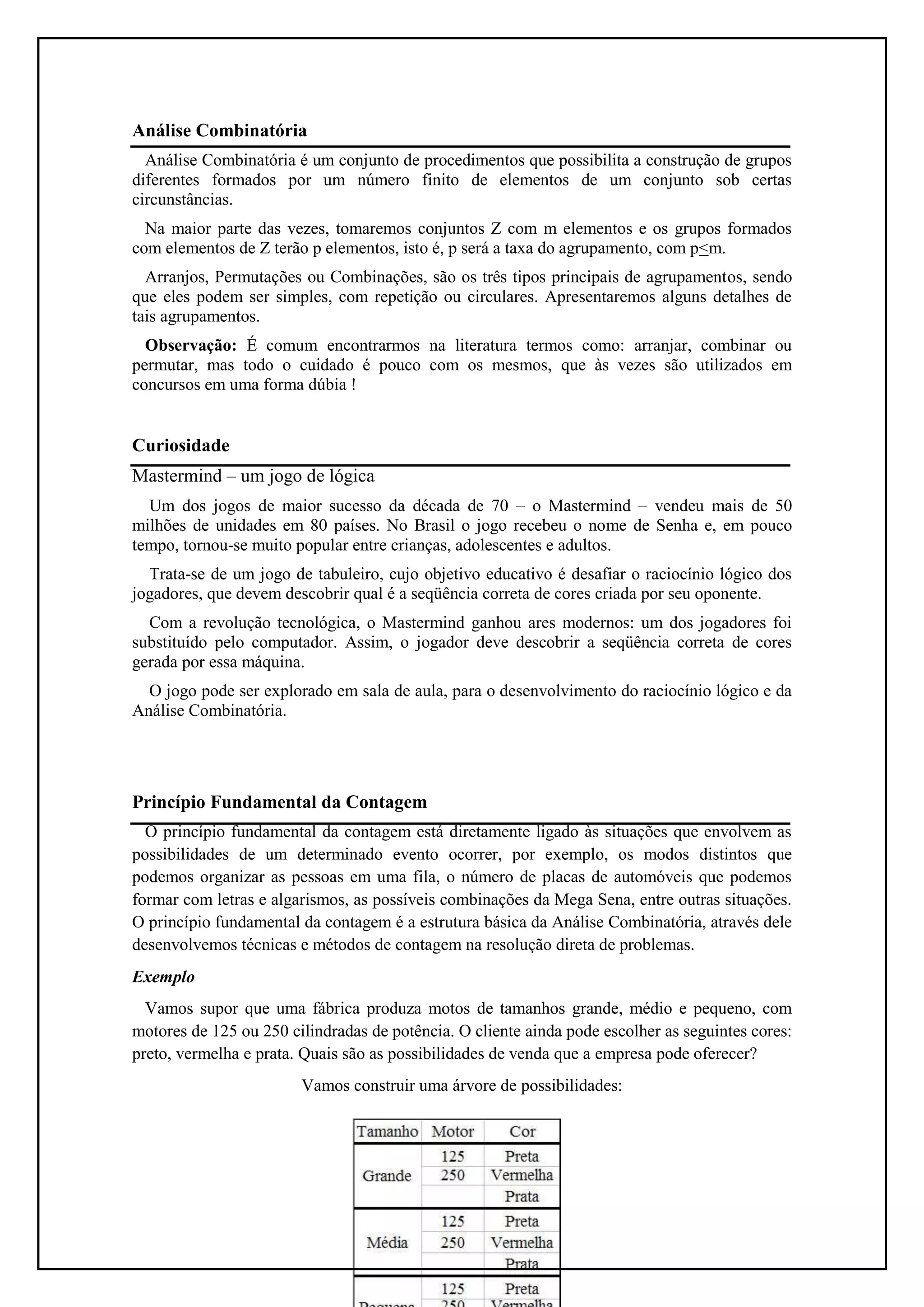 1) Análise Combinatória estuda os grupos formados por elementos de um conjunto sob certas circunstâncias.