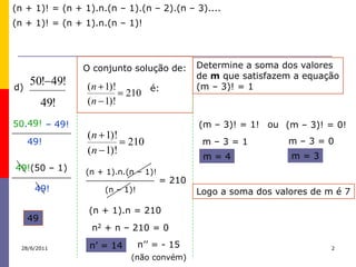 50.49! – 49! (m – 3)! = 1! ou (m – 3)! = 0!