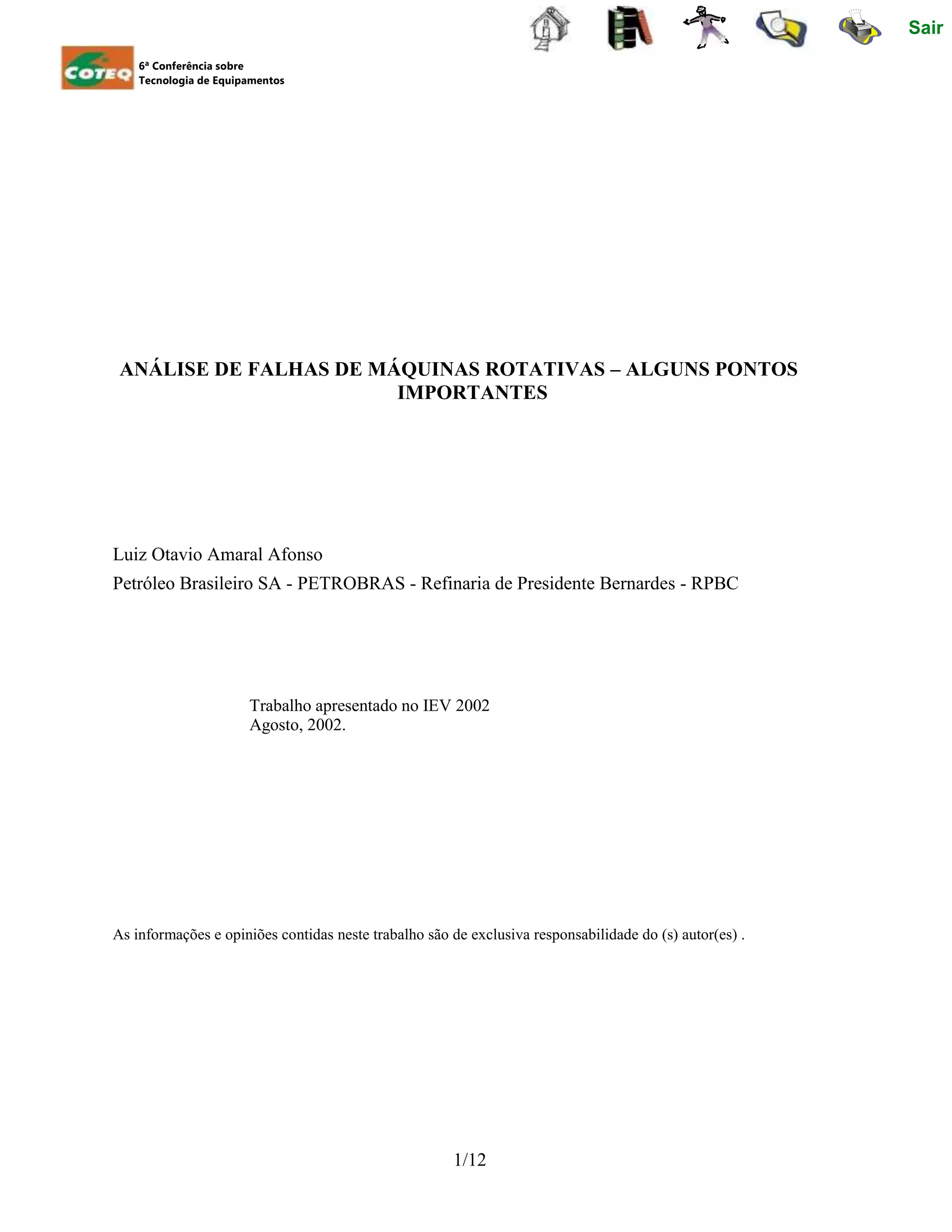 O documento discute a importância da análise de falhas de máquinas rotativas para aumentar a confiabilidade e reduzir custos. Ele descreve como uma refinaria implementou um programa de análise de falhas que resultou na redução de falhas em 68% e cortes de custos, através da identificação dos principais problemas, treinamento do pessoal, e soluções focadas. Dois exemplos ilustram como a análise de falhas pode prevenir novos problemas identificando as causas básicas.