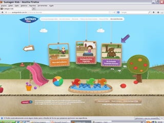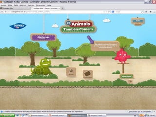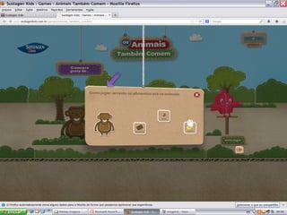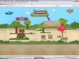 O documento descreve uma atividade pedagógica com crianças da educação infantil sobre alimentação saudável utilizando recursos como vídeo, jogo online, visita ao zoológico e cartazes confeccionados pelas crianças. O objetivo é incentivar hábitos alimentares saudáveis e reconhecer a importância de frutas, legumes e verduras para a saúde humana e de animais.