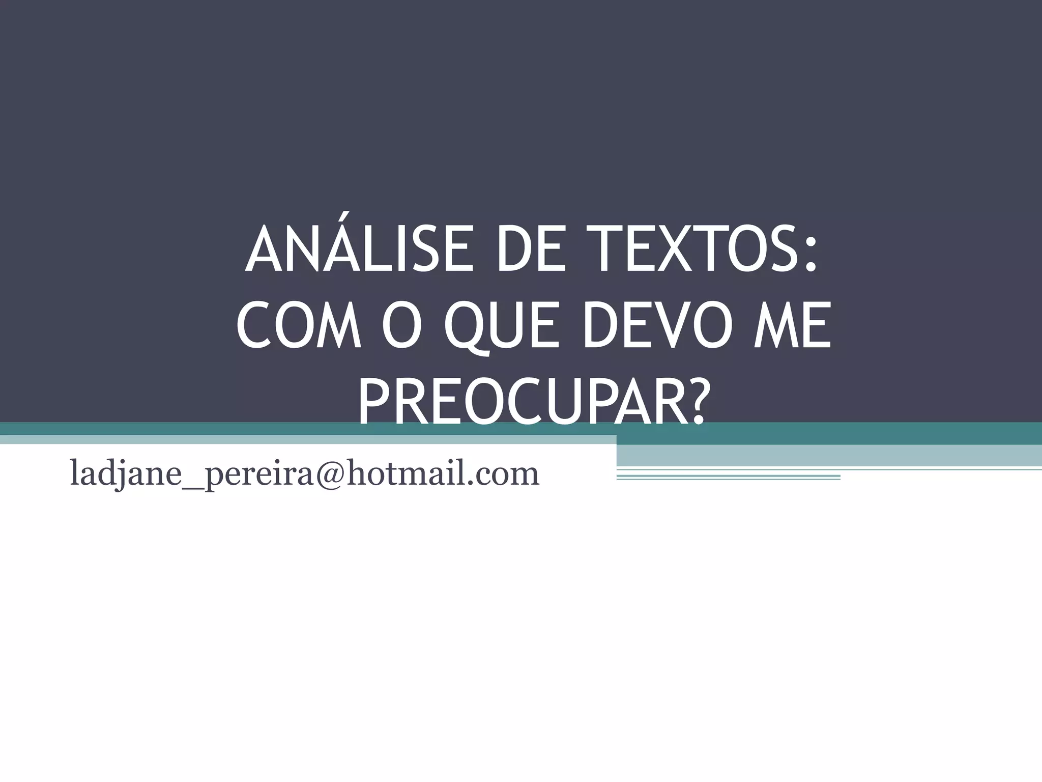 O documento fornece orientações gerais sobre análise de textos, enfatizando a importância de identificar o gênero textual, os tipos de enunciados e evitar erros como extrapolar, reduzir ou contradizer as ideias do texto. Também discute a diferença entre interpretação e compreensão de um texto e fornece dicas como buscar a ideia principal nos parágrafos de introdução e conclusão.