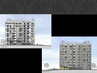 O documento descreve o projeto do Edifício Aimberê em Perdizes, São Paulo, projetado pelos arquitetos Vinicius Andrade e Marcelo Morettin. O prédio de nove andares contém 12 unidades autônomas com diferentes configurações e inclui jardins no térreo e terraços. Sua implantação no terreno delimitado provê acessos separados para pedestres e veículos.
