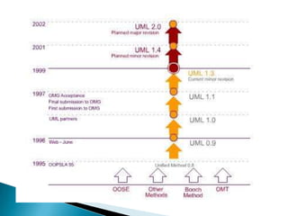 O documento discute conceitos de modelagem orientada a objetos e a linguagem UML, incluindo diagramas e elementos básicos. Também aborda desafios no desenvolvimento de sistemas embarcados e a importância da adoção da UML.