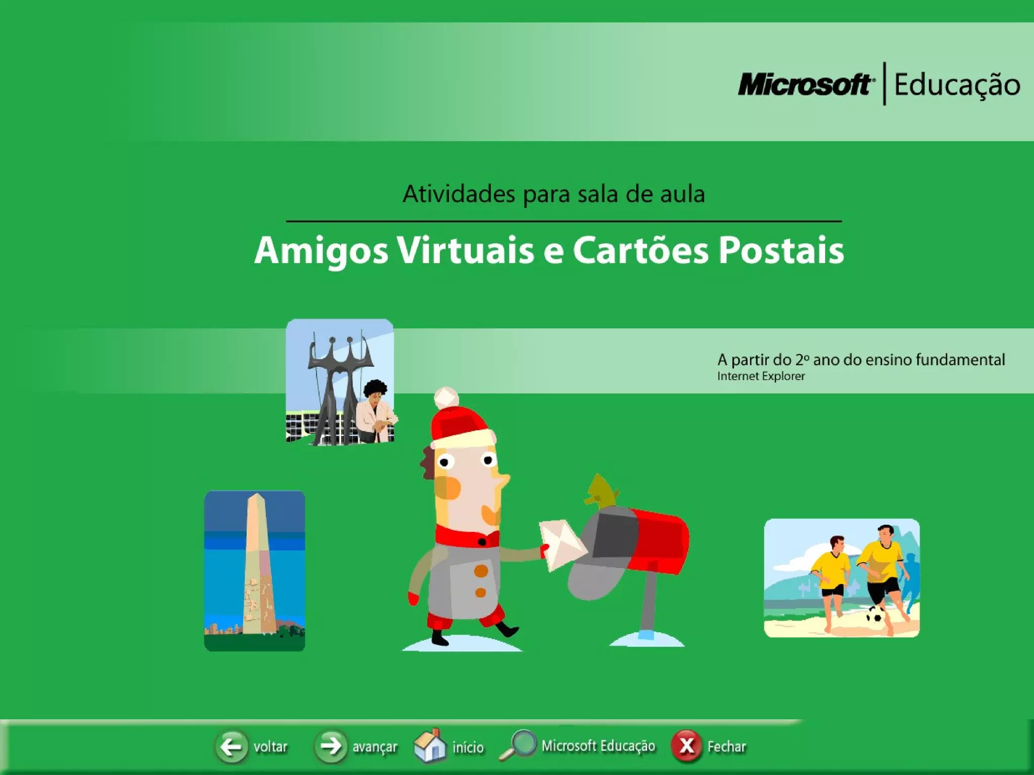 Este documento fornece um plano de aula para uma atividade chamada "Amigos Virtuais e Cartões Postais" que visa ensinar estudantes sobre comunicação, geografia e cultura brasileira. A atividade envolve criar uma página na internet para fazer amigos virtuais em outros estados e receber cartões postais reais desses lugares. A atividade ocorrerá em aulas na sala de aula e no laboratório de informática e inclui instruções detalhadas para cada etapa.