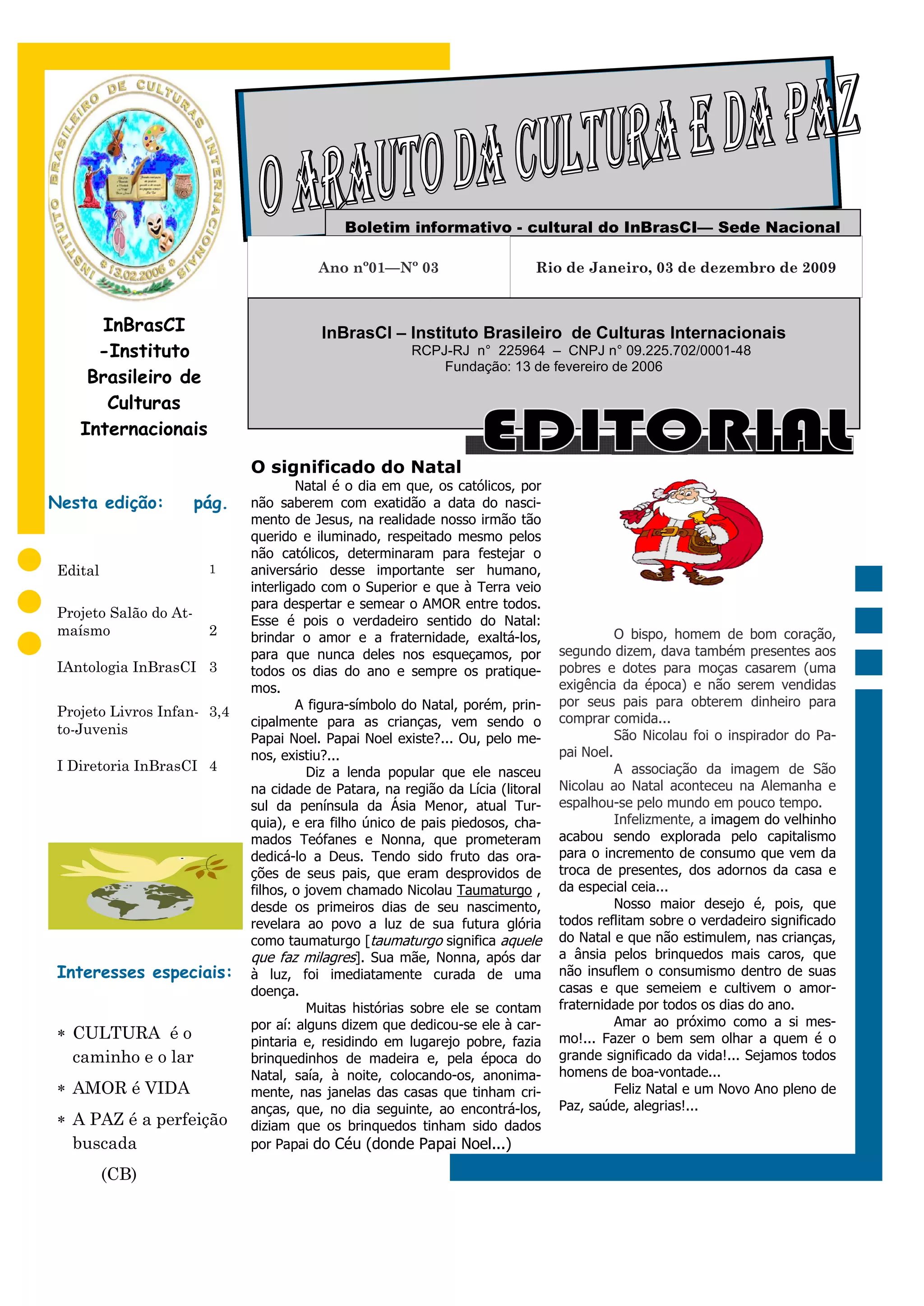 O boletim discute o significado do Natal, enfatizando a importância do amor e da fraternidade. Também explica a origem da figura do Papai Noel e como ela acabou sendo explorada comercialmente. Por fim, deseja que as pessoas reflitam sobre o verdadeiro espírito do Natal.