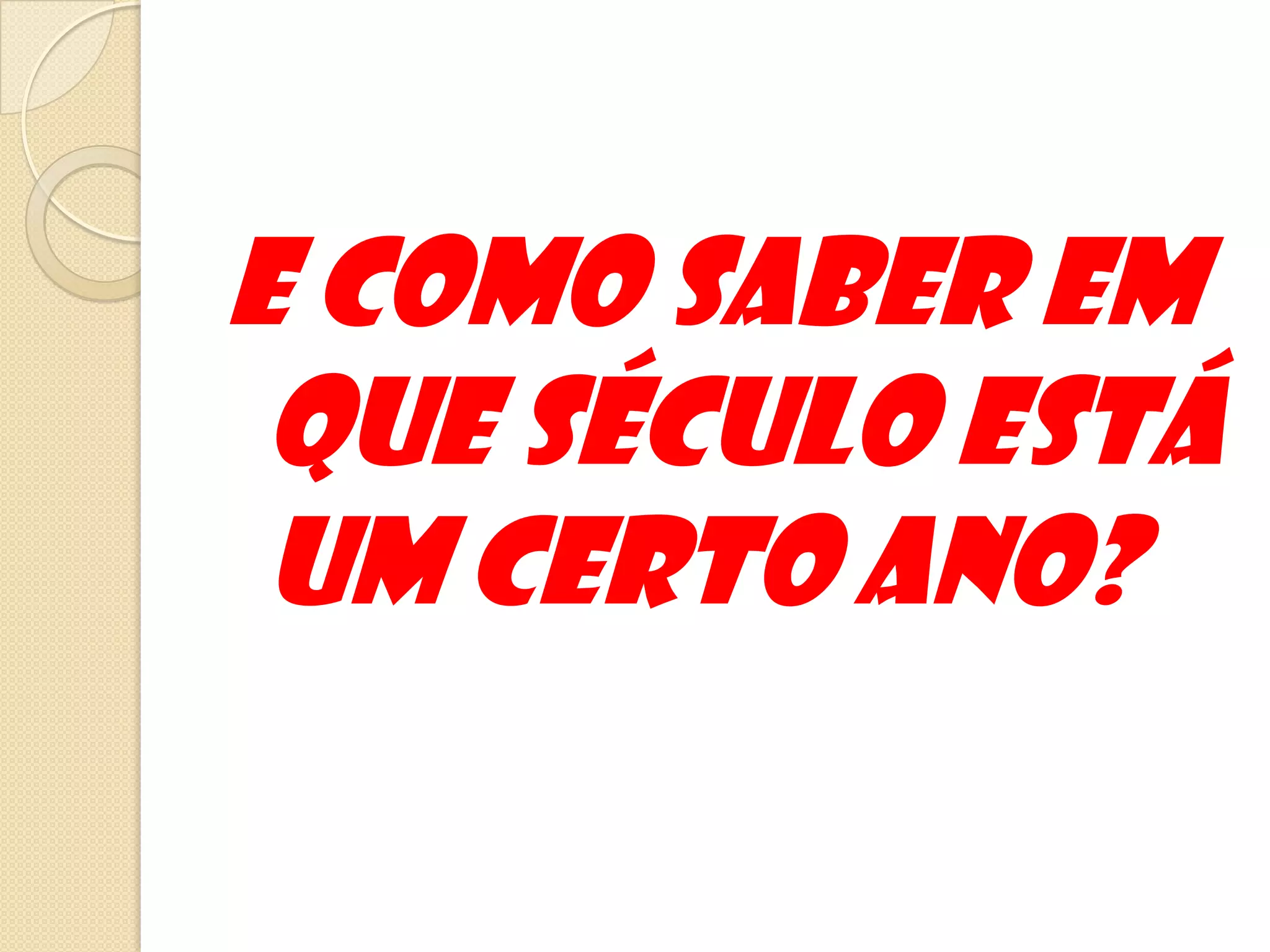 O documento fornece uma explicação passo-a-passo de como determinar em que século está um determinado ano, contando as duas últimas casas do número do ano e somando ou não 1 ao número resultante de acordo com se o ano termina em 00 ou não.